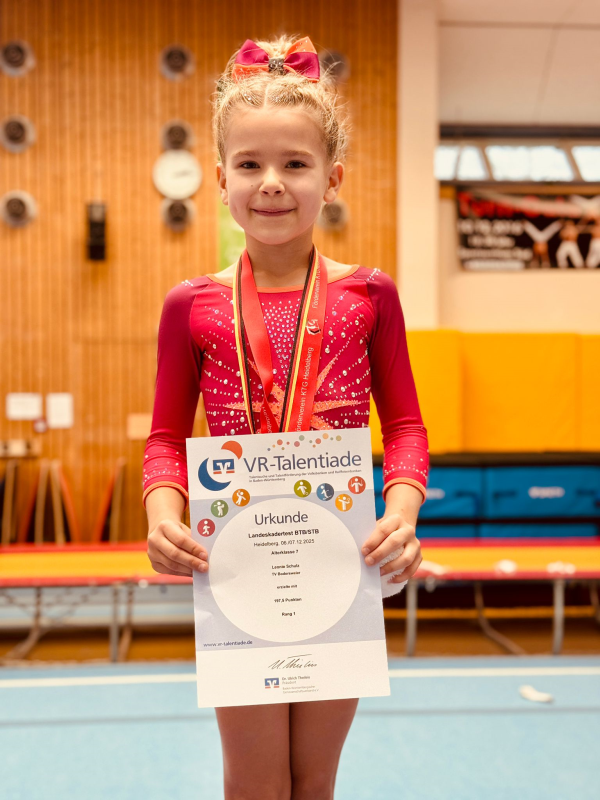 Luisa Groeschl (TG Neureut) trat in der Altersklasse 14 an und lieferte einen nahezu fehlerfreien Wettkampf ab, der mit einem tollen 2. Platz belohnt wurde. Zudem erzielte sie die Tageshöchstwertung am Boden.