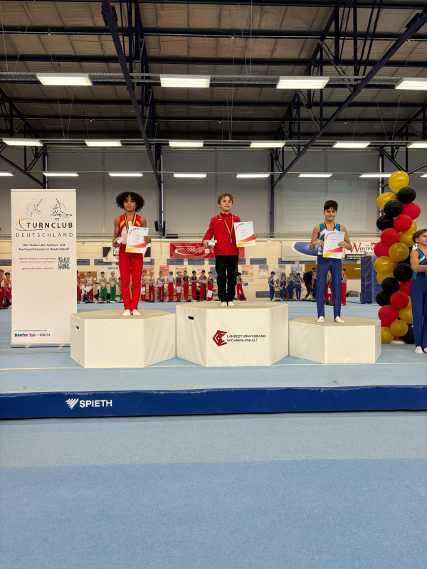 Die erste Mannschaft der AK9/10 mit Leon und Elyas zeigte beeindruckende Leistungen und sicherte sich den Deutschland-Pokal vor den Teams aus Bayern und dem Schwäbischen Turnerbund. In der Einzelwertung glänzte Elyas mit einem hervorragenden 2. Platz, nur zwei Zehntel hinter dem Sieger, und war damit bester Turner seiner Altersklasse (AK9). Leon belegte einen starken 7. Platz und trug entscheidend zum Erfolg der Mannschaft bei.