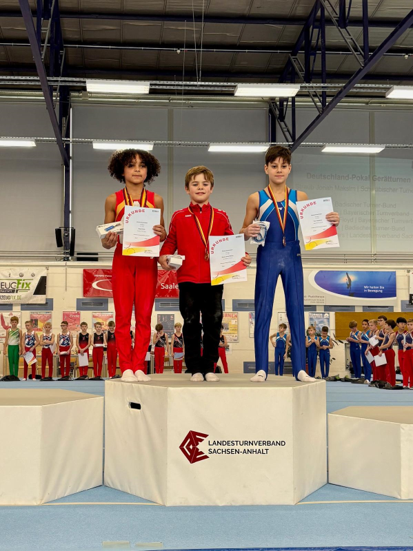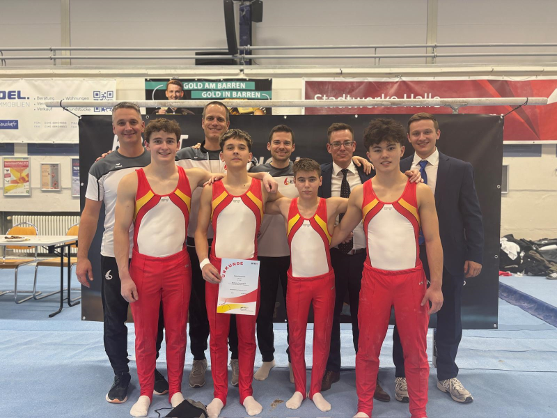 Beim diesjährigen Deutschland-Pokal im Gerätturnen männlich in Halle waren erstmals gleich fünf Turner aus Karlsruhe mit den badischen Auswahlmannschaften am Start: Laurenz, David, Leon, Elyas (AK9/10) und Nico (AK15-18).
